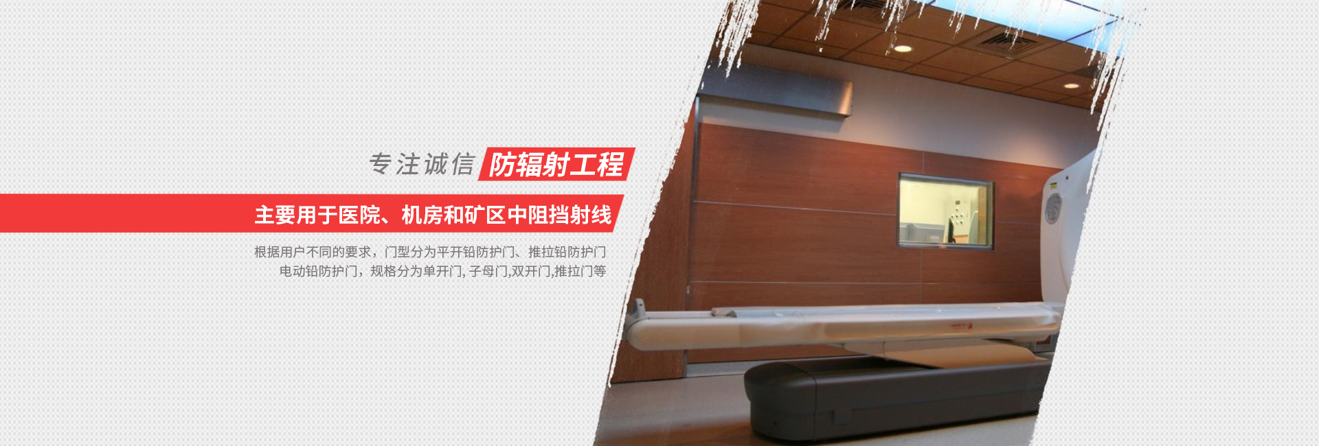 主要用(yòng)于需阻擋射線通(tōng)過的(de)進出口,主要使用(yòng)于醫用(yòng)、機房(fáng)和(hé)工業中。按門型可(kě)分(fēn)爲平開鉛防護門、推拉鉛防護門和(hé)電動鉛防護門。根據用(yòng)戶不同鉛當量的(de)要求,采用(yòng)不同厚度的(de)防輻射鉛闆設計制作,鉛門表面材料一般采用(yòng)304不鏽鋼闆,也(yě)可(kě)根據客戶采用(yòng)彩鋼闆、彩鋁闆或鋼闆噴塑。門的(de)規格有單開門, 子母門,雙開門,推拉門等。